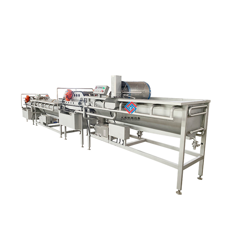 更新時間:2023-2-14 點擊:2335次蔬菜清洗加工生產(chǎn)線/流水線配備了提升機、清洗機、振動瀝水機,可以將蔬菜經(jīng)過兩道清洗工序之后瀝水干凈,整條生產(chǎn)流水線設(shè)計合理,使用的過程中更加人性化,自動化程度較高、清洗效果好、物料不容易送到損壞,是目前蔬菜清洗加工和中方廚房的理想設(shè)備。
